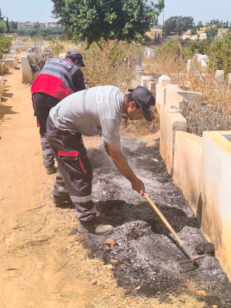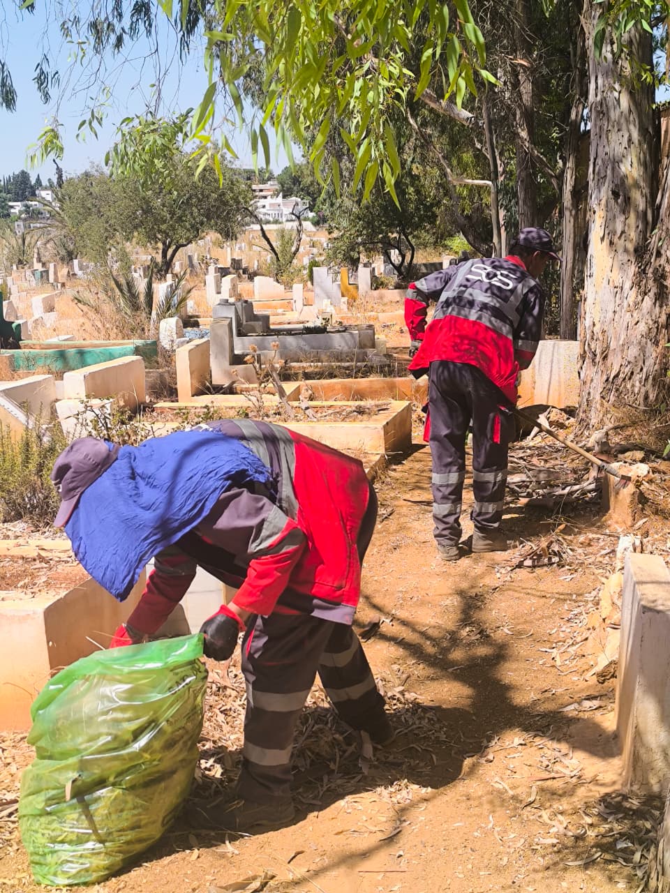 جمع وإزالة النفايات والمخلفات من داخل المقبرة ومحيطها.